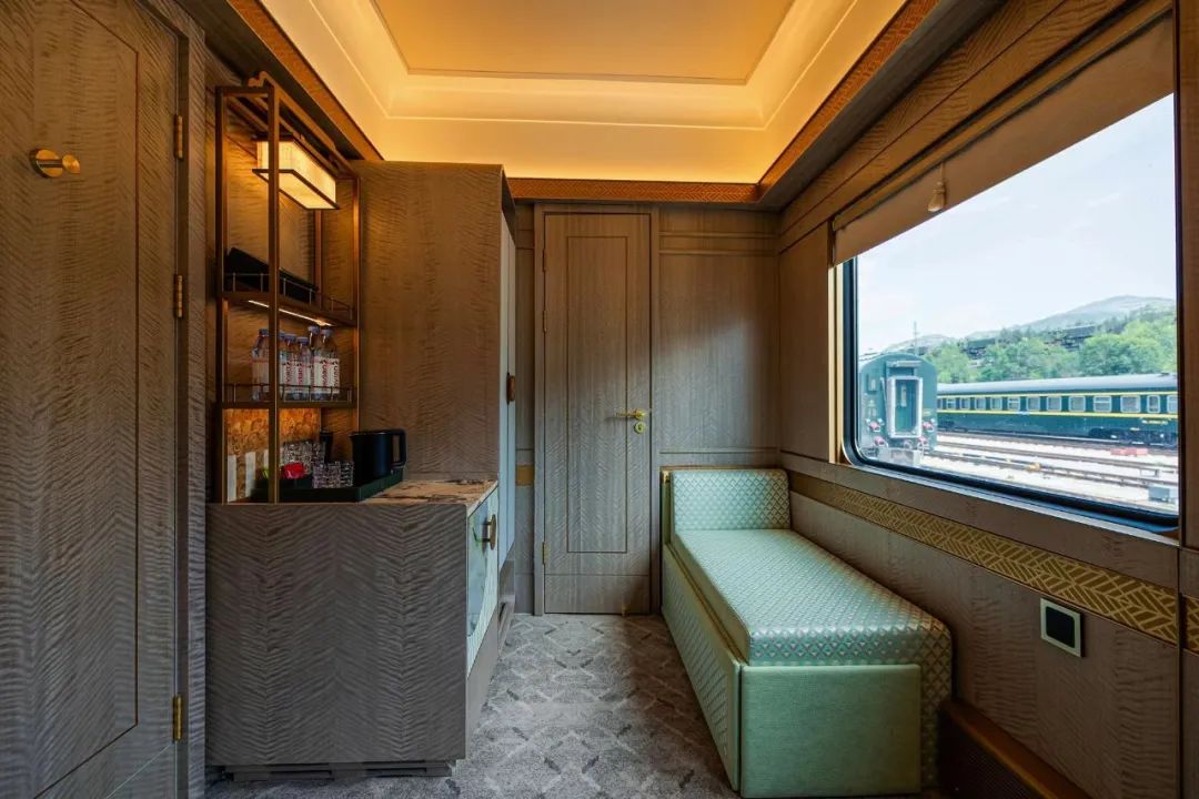 全车共有15节车厢,除全独立卫浴卧房车厢外,还配有客厅沙龙车、中西式餐车以及可观景、品茗、提供KTV欢唱等娱乐活动的多功能车厢。5位度假大使和专业的列车管家团队将为游客提供24小时服务,2位旅拍摄影师将陪伴游客记录旅途时光。