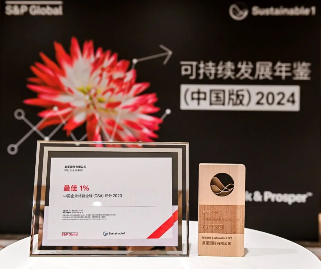 复星国际入选标普全球《可持续发展年鉴(中国版)2024》最佳1%及 获“行业最佳进步企业”殊荣