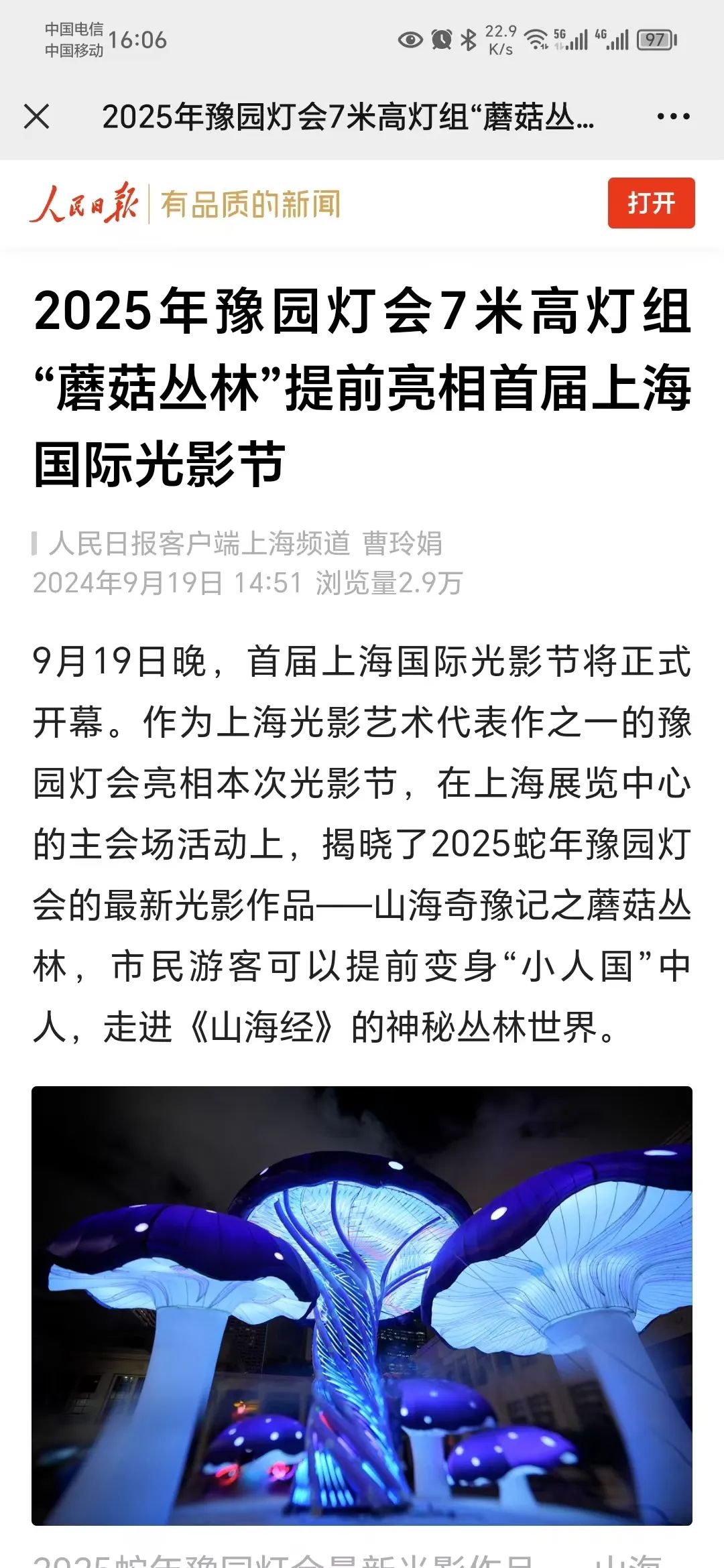 2025豫园灯会“蘑菇丛林”灯组亮相首届上海国际光影节