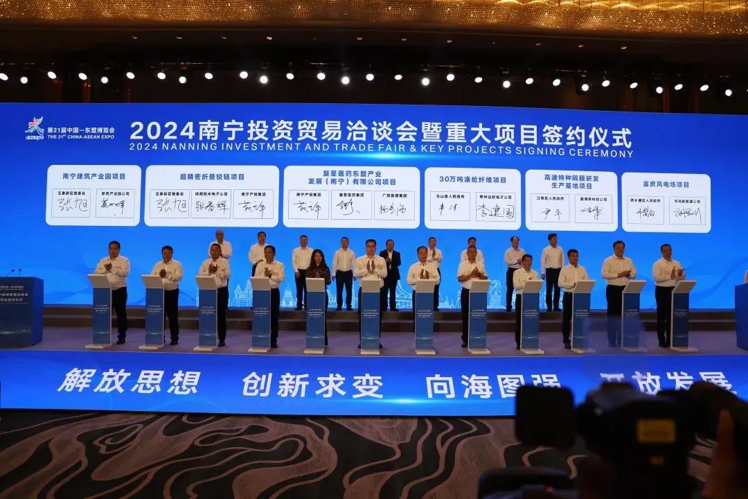 2024年9月24日,第21届中国—东盟博览会、中国—东盟商务与投资峰会正式开幕,期间举行了2024南宁投资贸易洽谈会暨重大项目签约仪式。