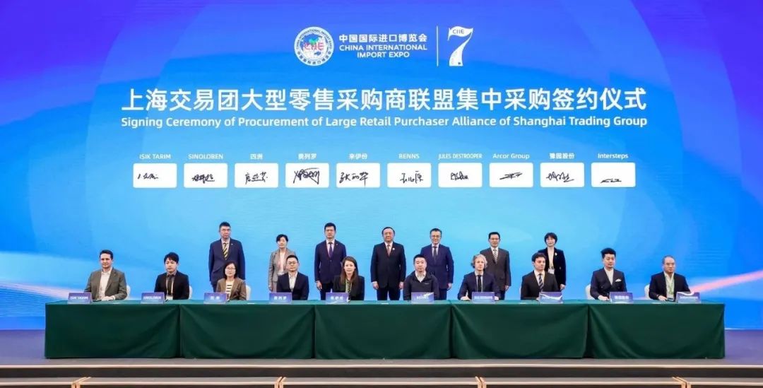 11月8日上午,作为第七届进博会配套现场活动之一,上海交易团大型零售采购商联盟集中采购签约暨主题论坛在国家会展中心(上海)4.2H B2厅举办。上海市委常委、副市长华源,中国国际进口博览局纪委书记、国家会展中心(上海)副总裁宋尚哲,上海市国资委副主任姚汝林,上海市商务委员会二级巡视员李泓以及零售联盟会员和相关企业的采购签约代表、签约展商及品牌商代表等嘉宾出席活动。