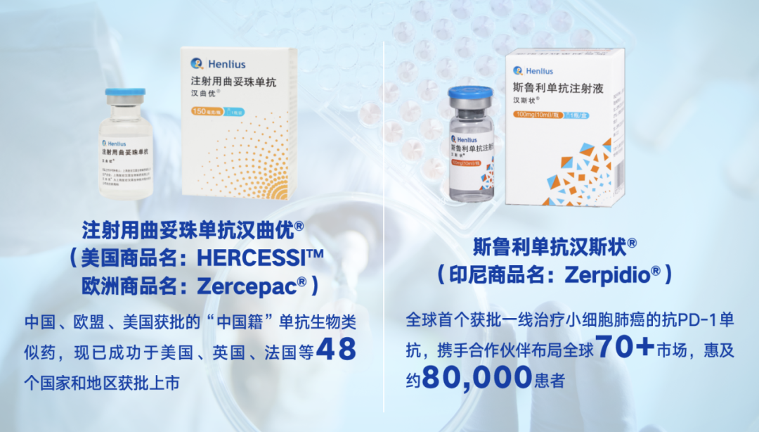 复星医药积极推动创新产品出海,以研、产、销一体的全产业链的国际化布局,推动中国产品走向全球。复星医药自主研发的汉曲优®(注射用曲妥珠单抗,美国商品名:HERCESSI™,欧洲商品名:Zercepac®作为获批上市国家和地区最多的国产单抗生物类似药,已在49个国家和地区获批上市,覆盖亚洲、欧洲、拉丁美洲、北美洲和大洋洲,惠及超过21.5万患者,为全球乳腺癌和胃癌患者带去可负担、高品质的治疗选择。自主研发的斯鲁利单抗汉斯状®(印尼商品名:Zerpidio®) 是全球首个获批一线治疗小细胞肺癌的抗PD-1单抗。目前,汉斯状®已有4项适应症获批,广泛覆盖肺癌、消化道肿瘤等高发肿瘤,累计惠及逾7.5万名患者。截至目前,汉斯状®对外授权已覆盖美国、欧洲、东南亚、中东和北非、印度等70多个国家和地区,并成为首个登陆东南亚国家的国产抗PD-1单抗。