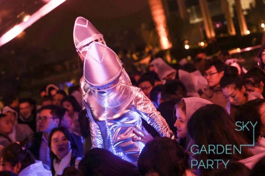 市集开始有了人气,商场里还是预备状态,商户还没有入驻,我们准备做点事情让商场“暖和”起来,迎接第一批入驻的商家。虽然是寒冷的12月,但派对总能让人热情洋溢,于是,第一场露台派对开始了。没想到,第一场Sky Garden Party大雨如注,雨篷搭好,竟然有种特别的美!