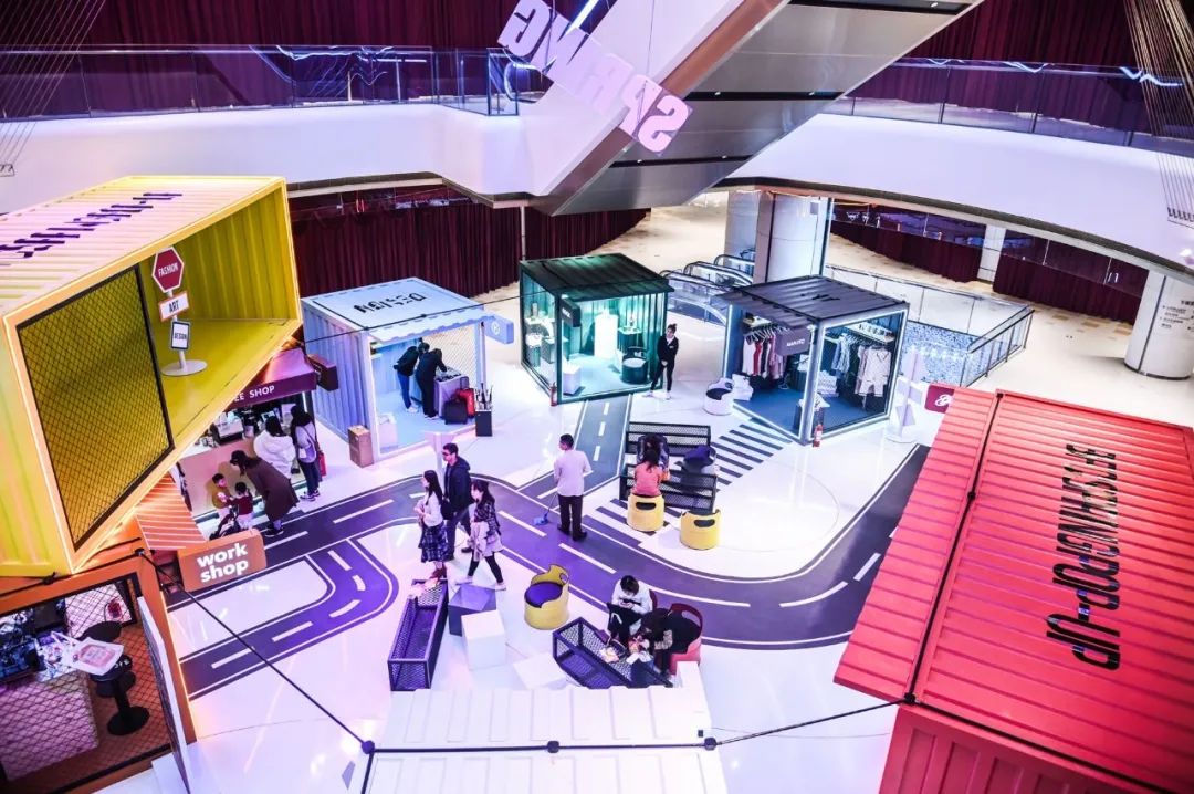 场内,商户还未入驻,我们做了一个好看的集装箱小市集,算是场内第一场POP-UP。