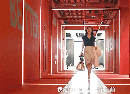 王曼妮身着职业装,穿过BFC FITENESS网红长廊