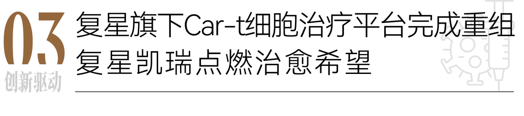 9月13日,复星医药对复星凯特完成全资控股重组,并正式更名为复星凯瑞。复星凯瑞旗下CAR-T细胞治疗产品奕凯达是国内首个且目前唯一获批二线适应症的CAR-T细胞治疗产品。截止目前,复星凯瑞在全国28个省区市建立170多家奕凯达高标准治疗中心,并推动奕凯达纳入超过110款城市惠民保项目以及超过80款商业健康保险项目,首创的奕凯达按疗效价值支付计划,为国内高值创新药品的支付模式探索出一条新的发展路径。完成重组后,复星凯瑞作为复星医药细胞治疗技术的核心平台,将聚焦肿瘤免疫治疗领域,推动CAR-T细胞治疗产品惠及更多患者,帮助更多患者重拾治愈希望。