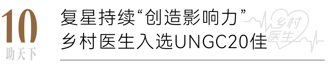 11月29日,联合国全球契约组织发起的 “二十年二十佳”企业可持续发展案例发布,复星“乡村医生计划赋能农村医疗服务”成功入选。今年是复星国际加入联合国全球契约组织十周年,自加入全球契约组织以来,复星始终将有关人权、劳工、环境和反腐败的全球契约十项原则纳入企业战略和运营中,MSCI ESG评级连续三年保持AA。今年复星还正式提出了 “创造影响力”(Create IMPACT)可持续发展战略,确定了六大长期战略方向,积极推动全球可持续发展。