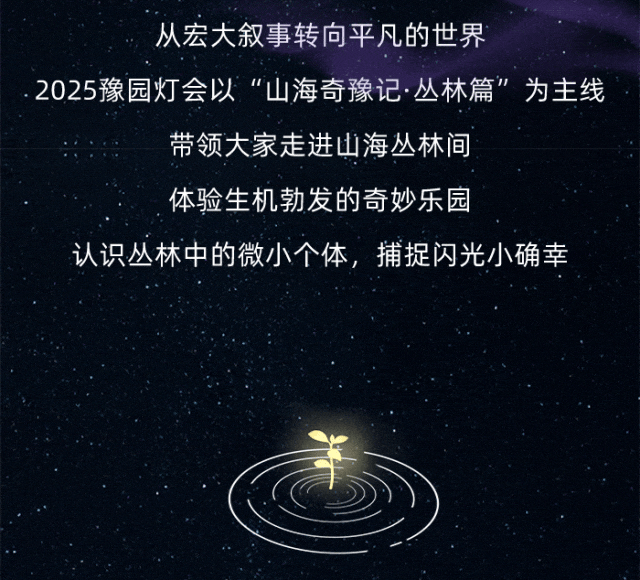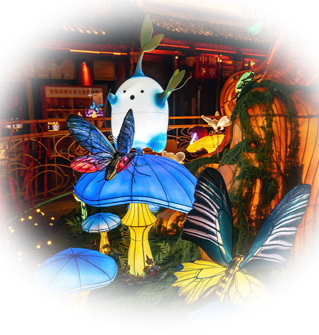 丛林变幻多彩,如梦绮丽。在这里,每一株草、每一朵花都有名字,象征着豫园灯会对弱小生命的致敬与赞美。平凡的你我,正如丛林中的一员,看似微不足道,却拥有独特的光芒!