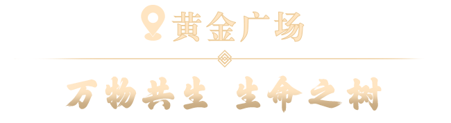 汲女娲与伏羲的创世神话为灵感,五号门以两棵茁壮古树灯彩交织而成。生命源泉亮起,延展出汩汩流动的生机银河,浇灌丛林间的生灵栖息之地,寓意万物俱荣,兴旺繁茂。