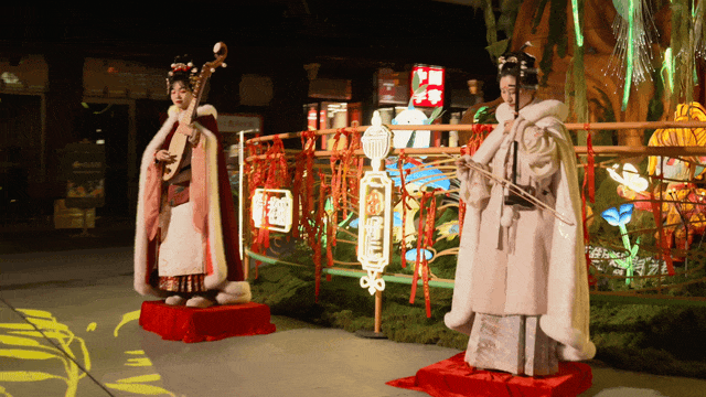 还有国潮乐队演绎山海潮音、古风舞台展现山海灵韵,以及灯组同款山海神兽化身真人NPC,和游人进行趣味互动,有机会解锁新年好运礼物!