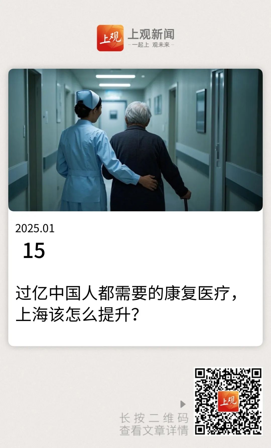 基于此,陈启宇建议,建立医疗网络完善、医疗层次分明的三级康复诊疗体系;建立以基本医疗保险为基石,商业保险为补充,消费医疗为特色的多元化康复支付体系;鼓励上海康复医疗服务和康复产业协同发展。