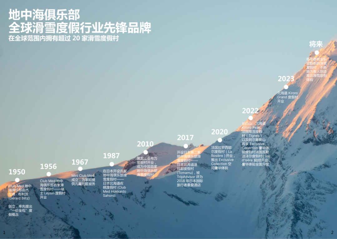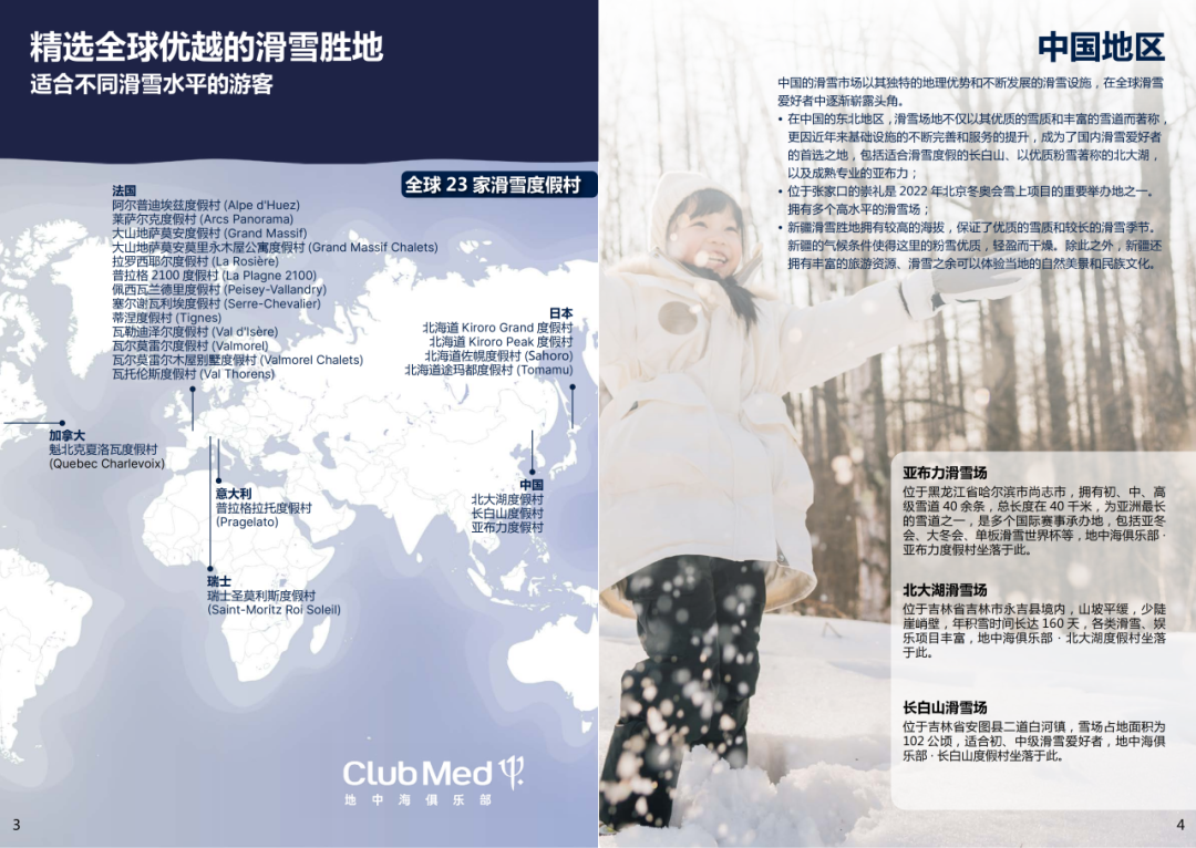 “作为全球滑雪度假行业先锋品牌,自1956年Club Med地中海俱乐部第一家滑雪度假村在瑞士开业以来,地中海俱乐部深耕冰雪度假行业近70年,一直致力于在行业前沿引领冰雪度假新趋势。目前,地中海俱乐部在全球20多个国家和地区运营近70座度假村,其中超过20家为冰雪度假村,在中国,我们也已布局长白山、北大湖、亚布力三大知名滑雪地区,运营3家室外冰雪度假村。凭借在滑雪行业的深厚积淀,地中海俱乐部不断提升消费者的滑雪度假体验。精致‘一价全包’模式让消费者尽享省心无忧之旅,同时,由专业教练团队提供的分级滑雪课程也为宾客带来了更为优质、专业的滑雪假期。未来,我们希望将更专业的滑雪体验带给更多消费者,为推动全球滑雪产业的蓬勃发展贡献力量。”