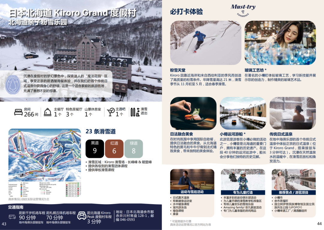 在Club Med地中海俱乐部·法国蒂涅度假村,宾客可以“滑进滑出”,畅滑优质雪道,尽览阿尔卑斯山壮丽山景。日本北海道地区同样是令滑雪爱好者心驰神往的目的地,这里拥有得天独厚的降雪条件,被誉为“粉雪天堂”,从11月中旬持续到次年5月上旬的超长雪季也为滑雪爱好者提供了充足时间尽情享受雪季乐趣。地中海俱乐部在北海道地区共布局4家滑雪度假村,无论是寻求刺激的高级滑雪者,还是刚刚踏上雪板的新手,抑或是希望享受家庭时光的宾客都可以在这里体验属于自己的滑雪假期。