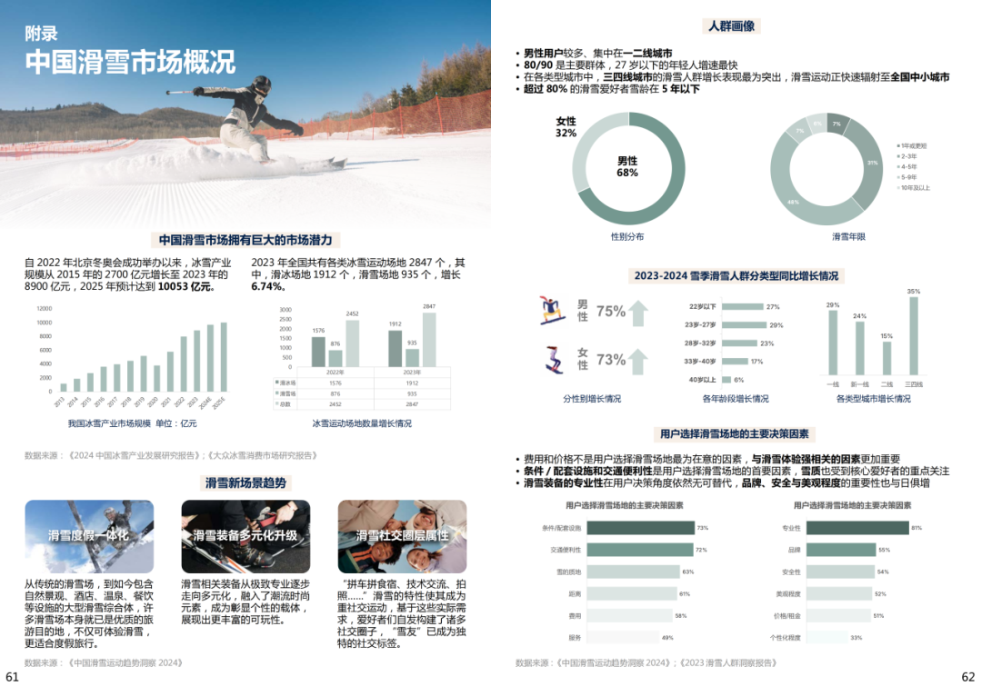 《2024中国冰雪产业发展研究报告》数据显示,中国滑雪市场正处于快速发展阶段,自2022年北京冬奥会成功举办以来,冰雪产业规模从2015年的2700亿元增长至2023年的8900亿元,2025年预计达到10053亿元,冬季运动在全国范围内的热度正在持续攀升。