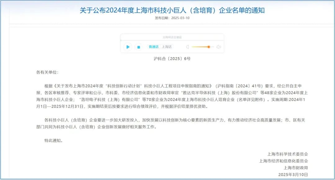 上海市科技小巨人是由上海市科学技术委员会、上海市经济和信息化委员会、上海市财政局联合发布,旨在深入实施创新驱动发展战略,加快建设具有全球影响力的科技创新中心,打造一大批具有国内外行业竞争优势的科技小巨人企业。