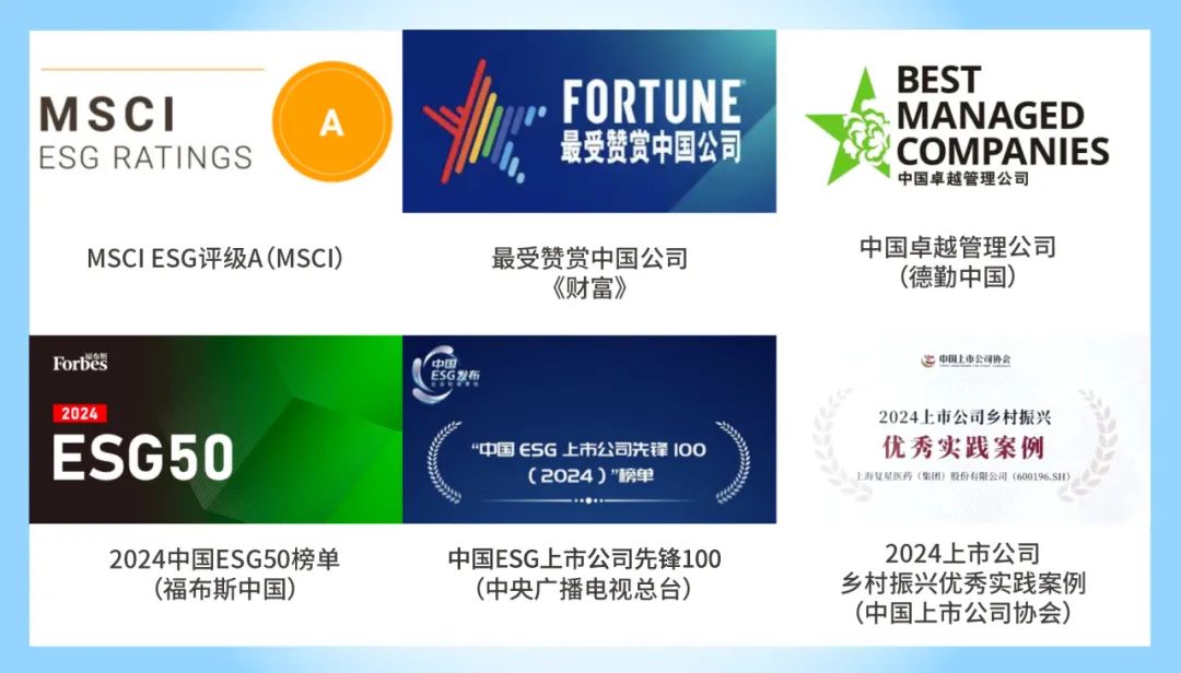2024年,复星医药在ESG领域表现突出,保持MSCI ESG评级A级和恒生ESG评级A-级,并荣获2024中国ESG 50榜单(福布斯)、中国ESG上市公司先锋100(央视总台)等多项殊荣。同时,凭借多年来在守护基层健康,赋能乡村医生方面的社会贡献,复星医药的乡村医生公益案例于2025年1月入选中国上市公司协会“2024上市公司乡村振兴优秀实践案例”,彰显了医药行业优秀企业的社会责任担当。