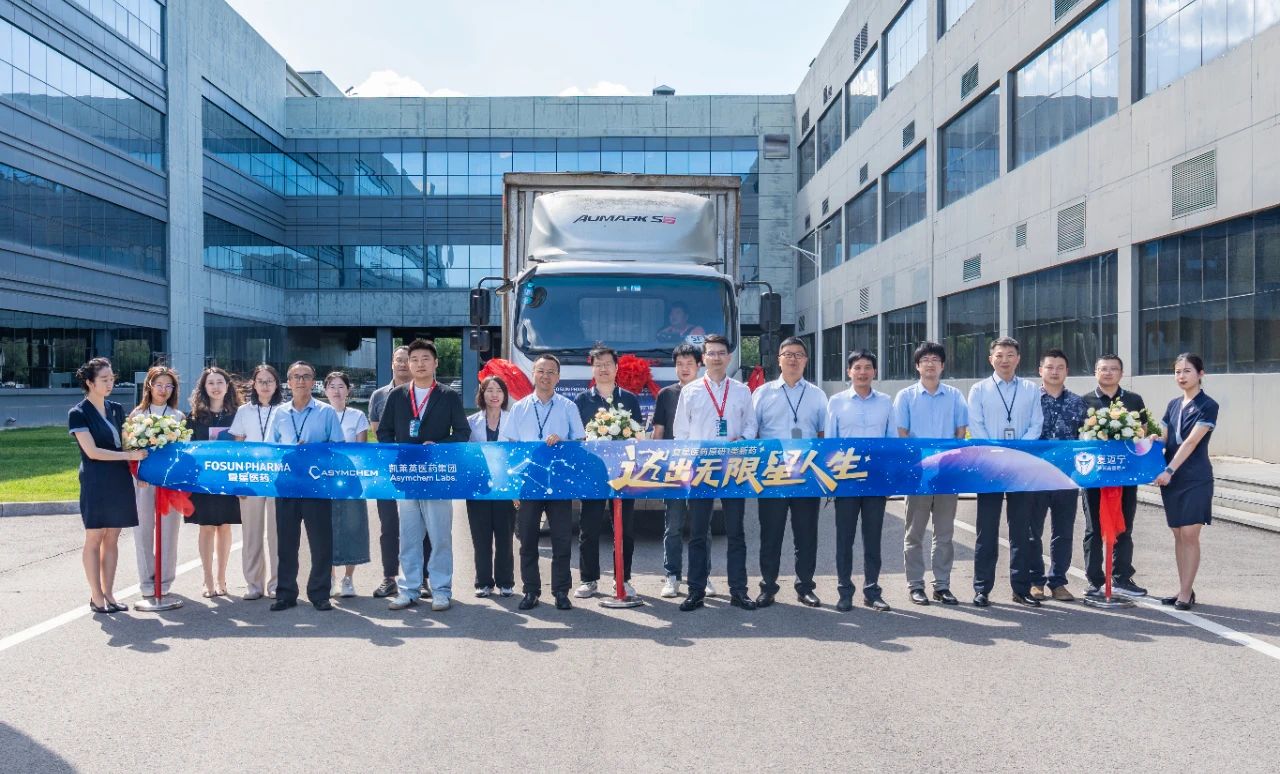 当天下午4时,满载复迈宁® 的物流车从产品受托生产方凯莱英医药集团位于天津的研发生产基地驶出,成功实现全国首批发货。复星医药国内营销平台副总裁兼实体瘤板块业务负责人柯宗山、凯莱英副总裁杨建波,执行副总经理杨涛等带领团队共同见证了这一振奋人心的历史性时刻。