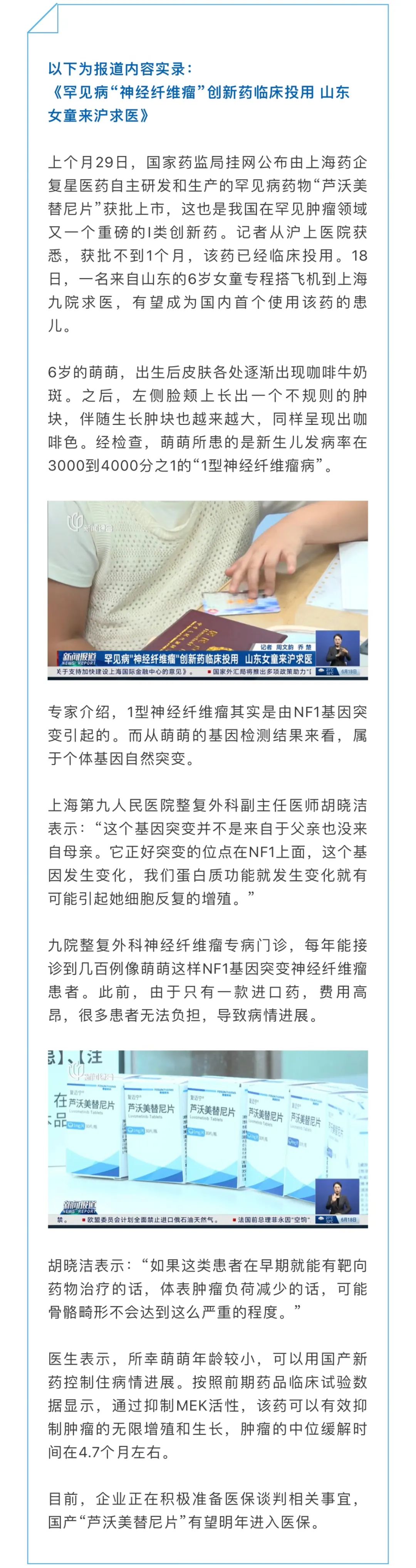 近日,上海电视台就复迈宁®正式临床投用使用进行了深度报道。
