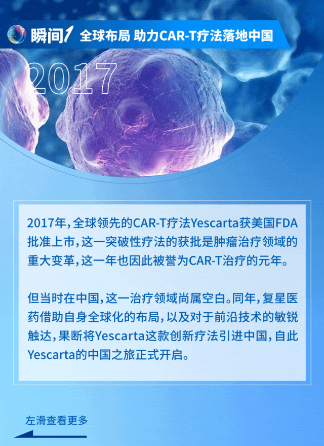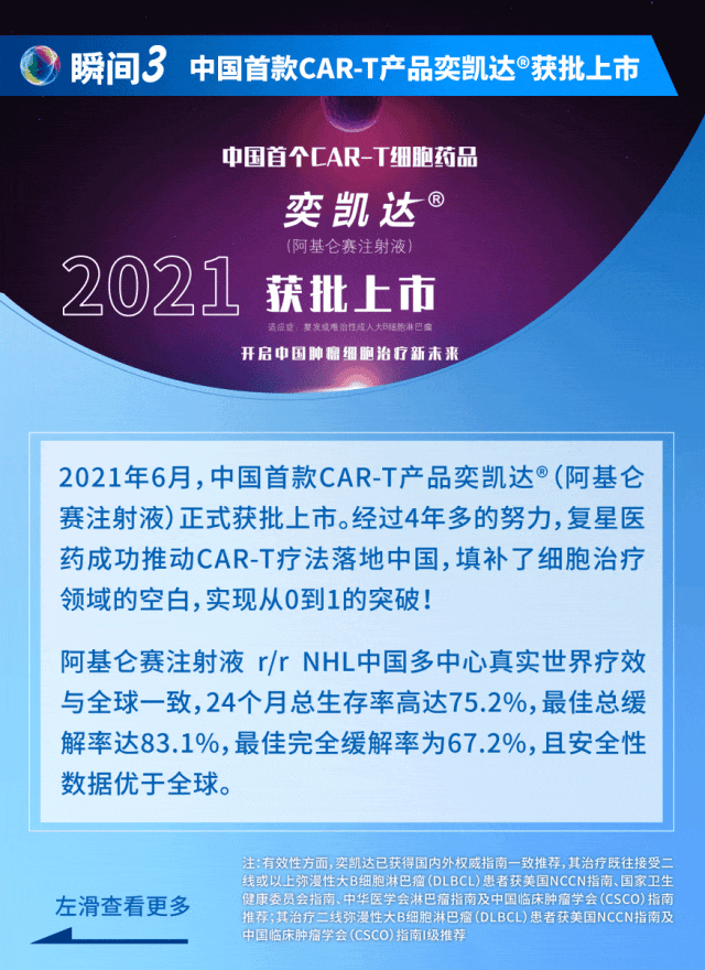 2021年6月,中国首款CAR-T产品奕凯达(阿基仑赛注射液)正式获批上市。经过4年多的努力,复星医药成功推动CAR-T疗法落地中国,填补了细胞治疗领域的空白,实现从0到1的突破!为纪念这一里程碑事件,每年6月22日定为“CAR-T日”,旨在提升公众对细胞治疗技术的认知。