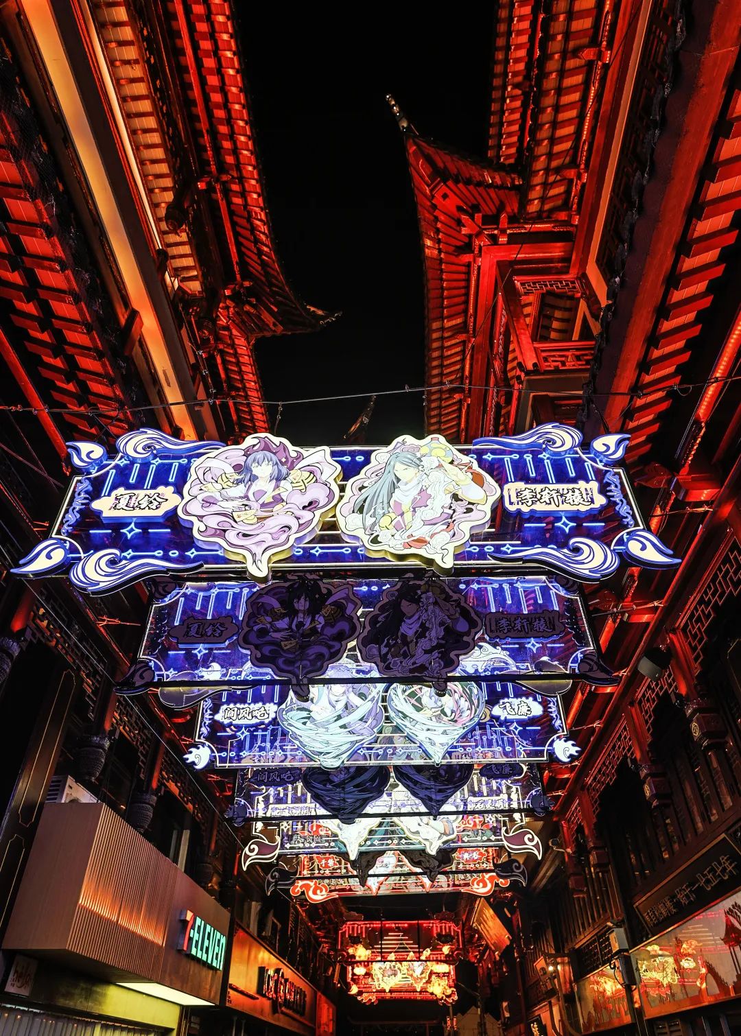 当凝晖路的灯笼映现出动画《天官赐福》里的极乐坊,当九曲桥的涟漪倒映出动画《百妖谱》里桃夭的倒影,当国风燃曲混搭灵魂唢呐点燃夏夜星河——上海老城厢这片拥有700多年历史的江南文化街区,正在经历一场史无前例的“次元裂变”。