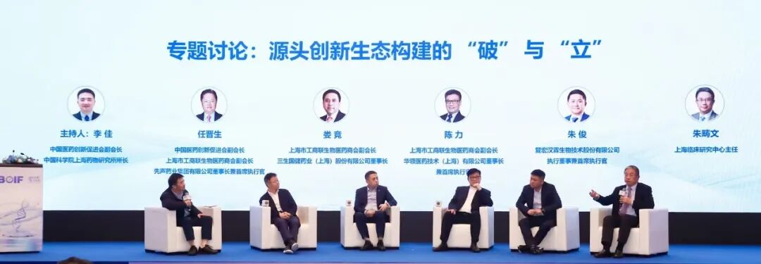 本场讨论由中国医药创新促进会副会长、中国科学院上海药物研究所所长李佳主持,邀请中国医药创新促进会副会长、上海市工商联生物医药商会副会长、先声药业集团董事长兼首席执行官任晋生,上海市工商联生物医药商会副会长、三生国健药业董事长娄竞,上海市工商联生物医药商会副会长、华领医药董事长兼首席执行官陈力,复宏汉霖执行董事、首席执行官朱俊,上海临床研究中心主任朱畴文等嘉宾,聚焦源头创新生态的壁垒破除与体系构建深入研讨。