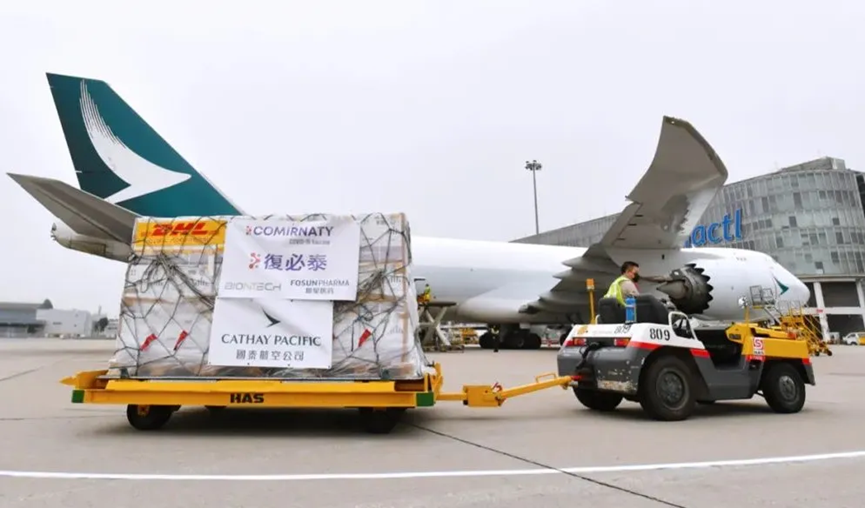 ▲2021年2月27日,首批mRNA新冠疫苗复必泰顺利抵达中国香港国际机场