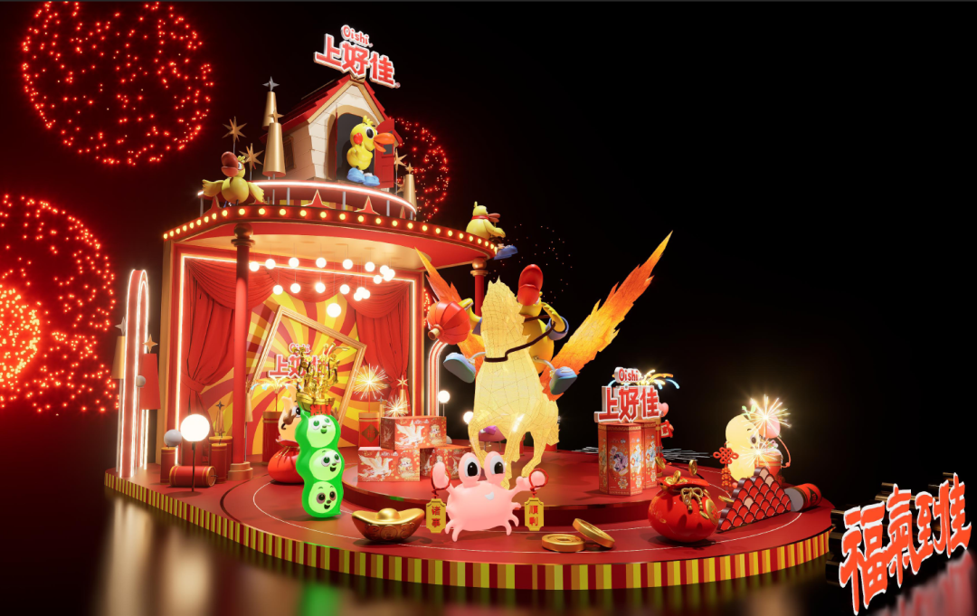 在BFC北区广场一座别出心裁的宫灯旋转木马装置瞬间点亮新春夜空,新春游园会于此开启。随着灯光探寻,BFC南区入口,MOLLY成为瞩目的门面担当;南区一层到三层,Hirono小野、BABYMOLLY和SKULLPANDA带着美好祝愿铺就一条新春祈福之路。在BFC露台,星星人-星梦迎春装置温馨点亮,以青花瓷为创作灵感,铺展开一幅诗意的新春画卷。外滩枫泾路化身为一条璀璨的“国风灯影长廊”,在渐变柔和的灯光下营造出一片可漫步赏灯的诗意氛围。