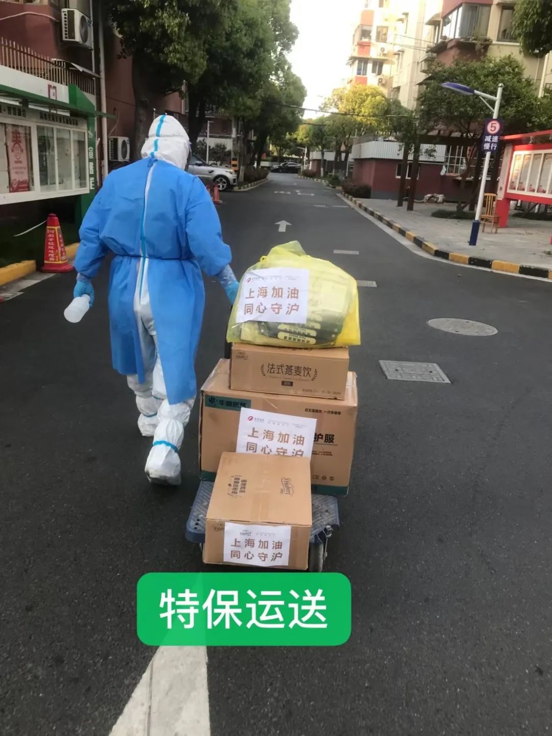 “送货师傅疫情期间仍坚持配送,感谢复星基金会的支持。”