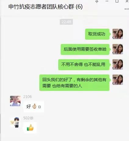 ▲潍坊新村志愿者负责人收到物资后通知志愿者