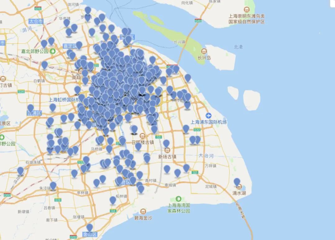 这张地图上的蓝色定位点既是驰援足迹,也是社区的抗疫需求,截至5月10日,共计610次社区驰援需求由复星基金会联合18家公益机构及企业、23位爱心人士筹措解决。自4月1日启动“社区驰援”行动以来,复星驰援足迹最东点落在滴水湖附近的临港新片区,最远是距离复星物资仓库80余公里的金山区行政服务中心,最密集的驰援行动分布于浦东地区,有144次。