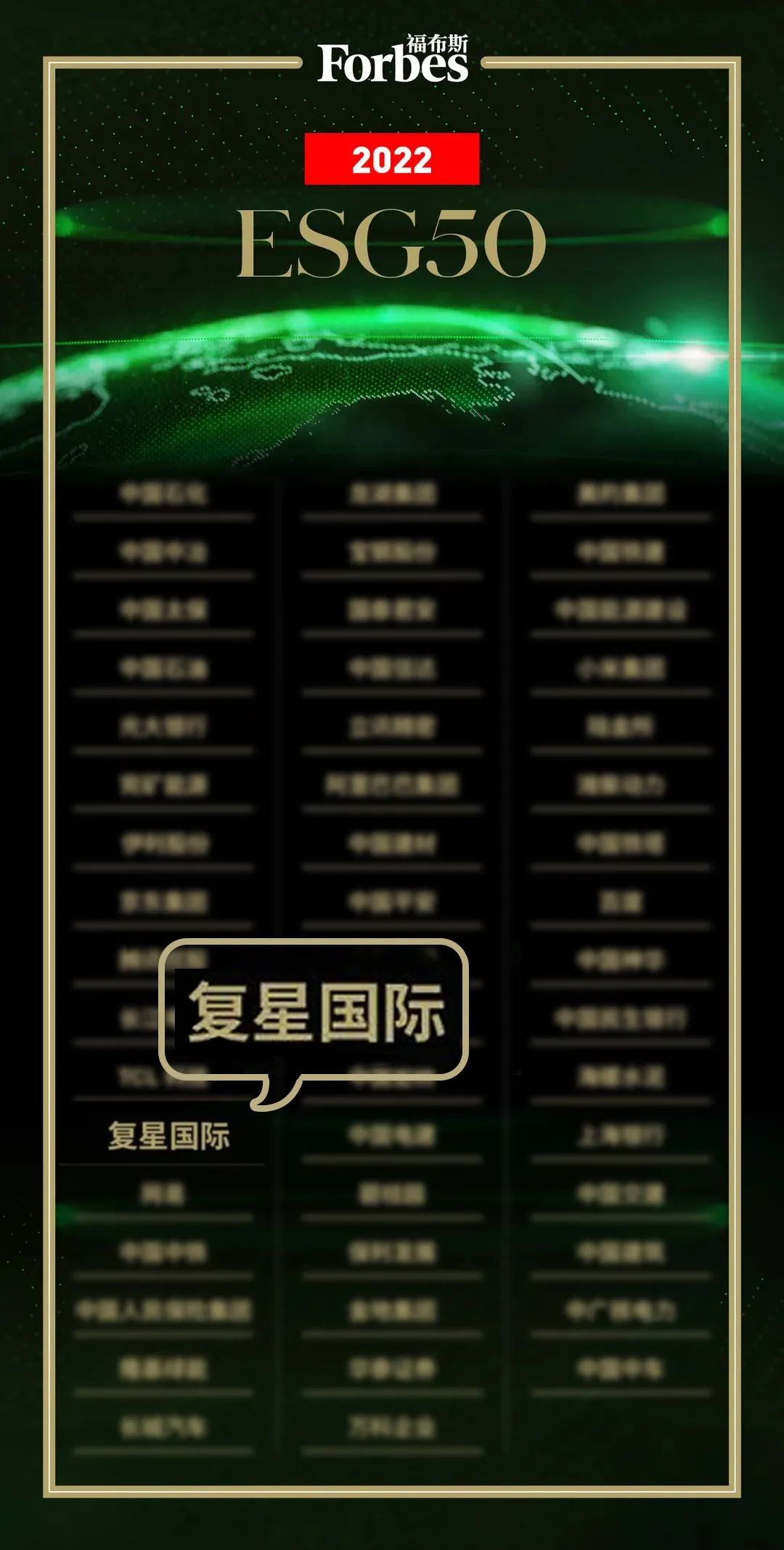 复星国际入选《福布斯》“2022中国ESG 50”榜单