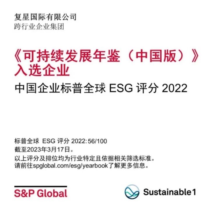 复星国际入选标普全球《可持续发展年鉴2023(中国版)》及获颁“行业最佳进步企业”标徽