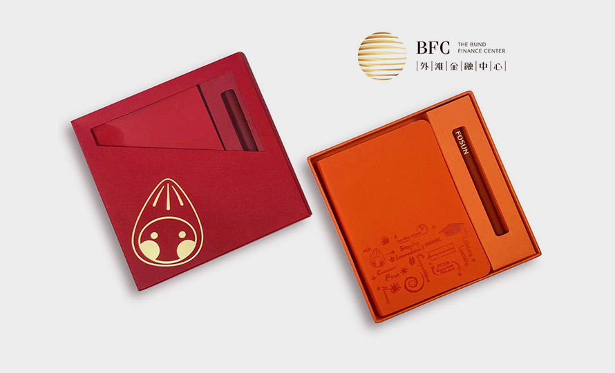 采用复星仁儿形象和标志性橙色搭配进口触感皮,表面印“复星八件事”宣传企业文化,背后单独居中压印复星30周年专属 logo,纪念30年奋斗不息并鼓舞继续向前。