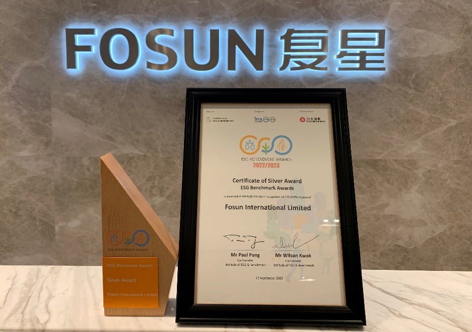 2023年9月26日,「环境、社会及企业管治成就大奖2022/2023」于9月22日在香港举行颁奖典礼。复星国际荣获「环境、社会、企业管治基准大奖」银奖,表彰复星国际在环境保护、社会责任、企业管治等方面的努力和卓越表现。