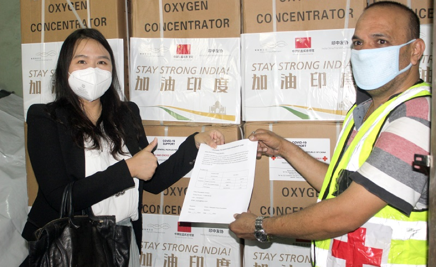 Chinesisch-indische Zusammenarbeit bei der Pandemiebekämpfung, Online-Übergabezeremonie für medizinische Materialien an Indien