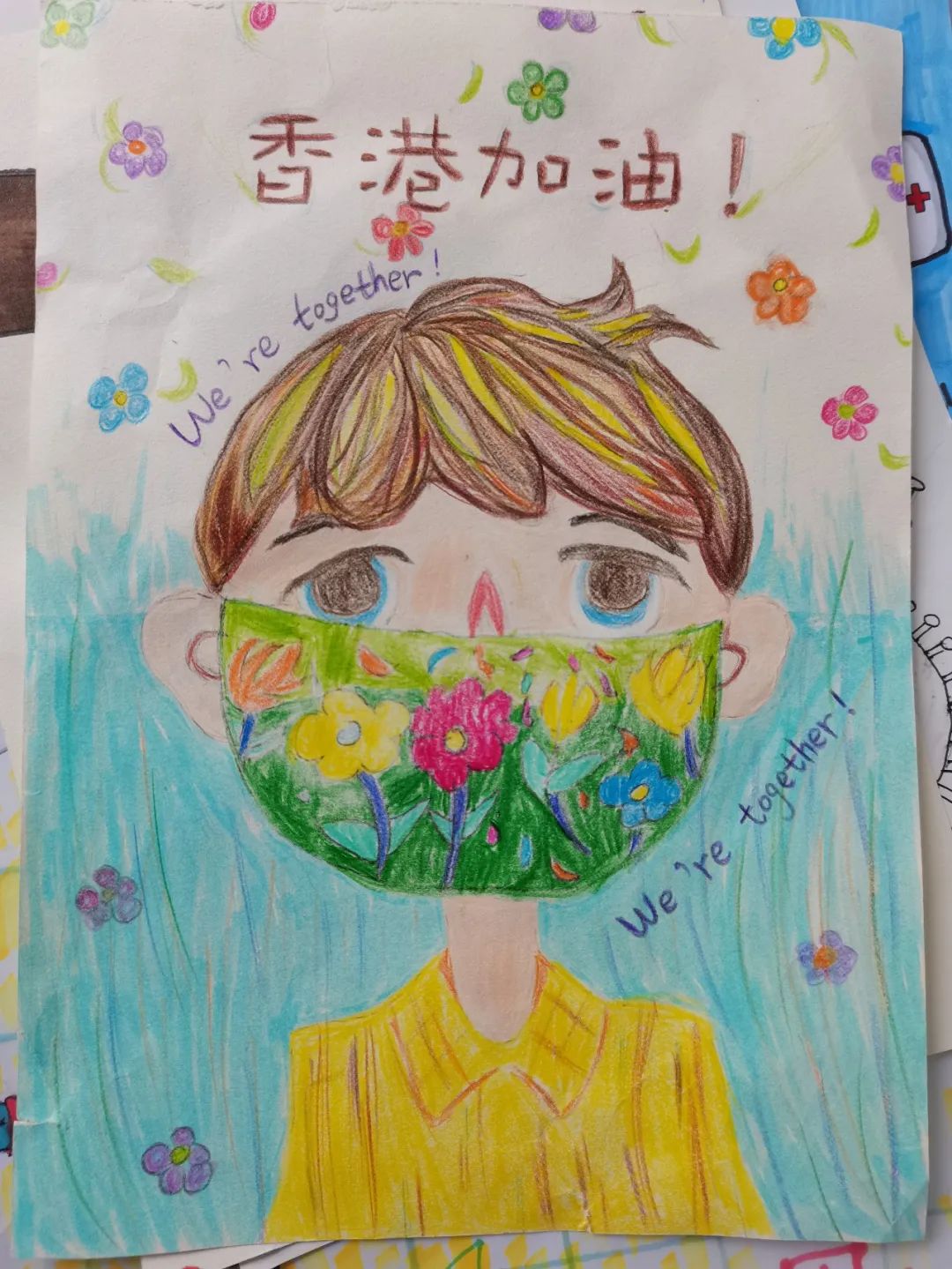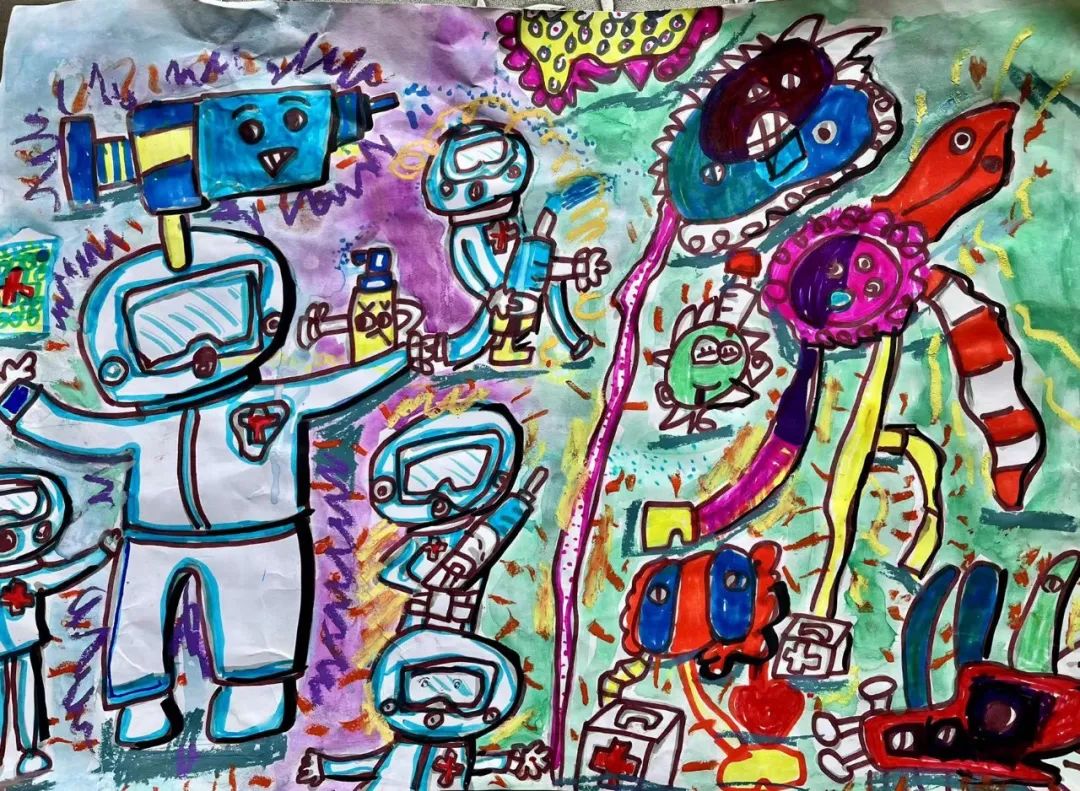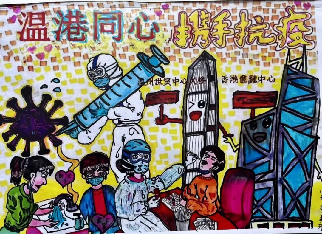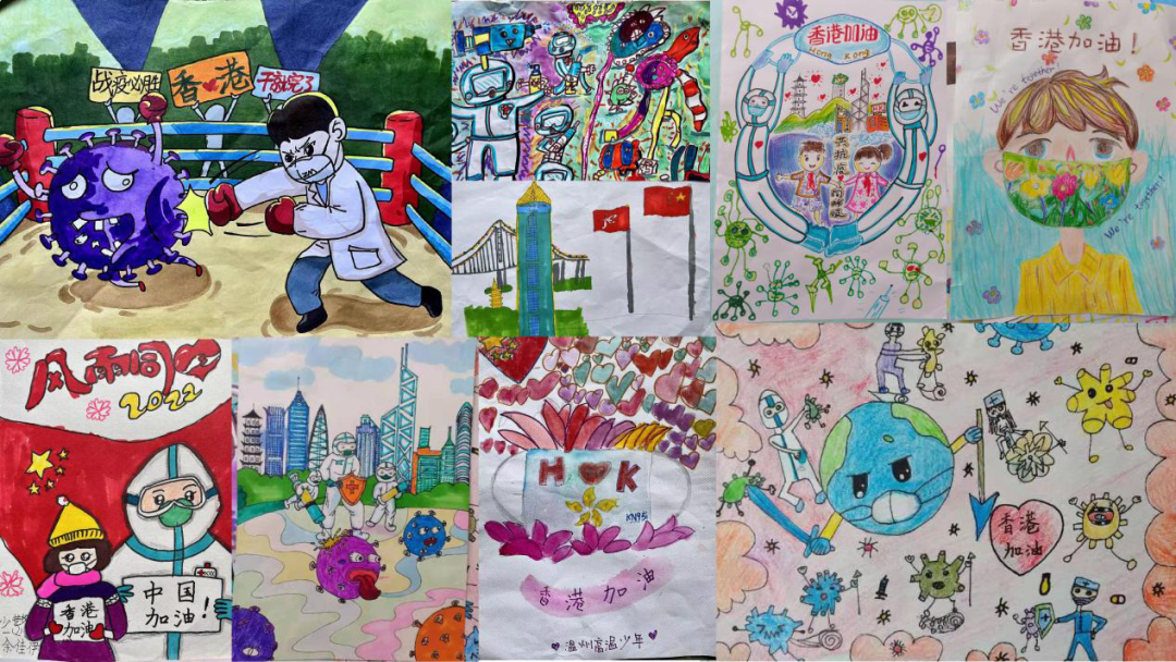 文字未脱稚气,色彩倾情绚丽,孩子们的画和10000只儿童医用外科口罩、21000件防护服、75000只3M N95口罩和5000人份自检抗原试剂将赠予这两家香港机构,再给到疫情中的社区儿童。