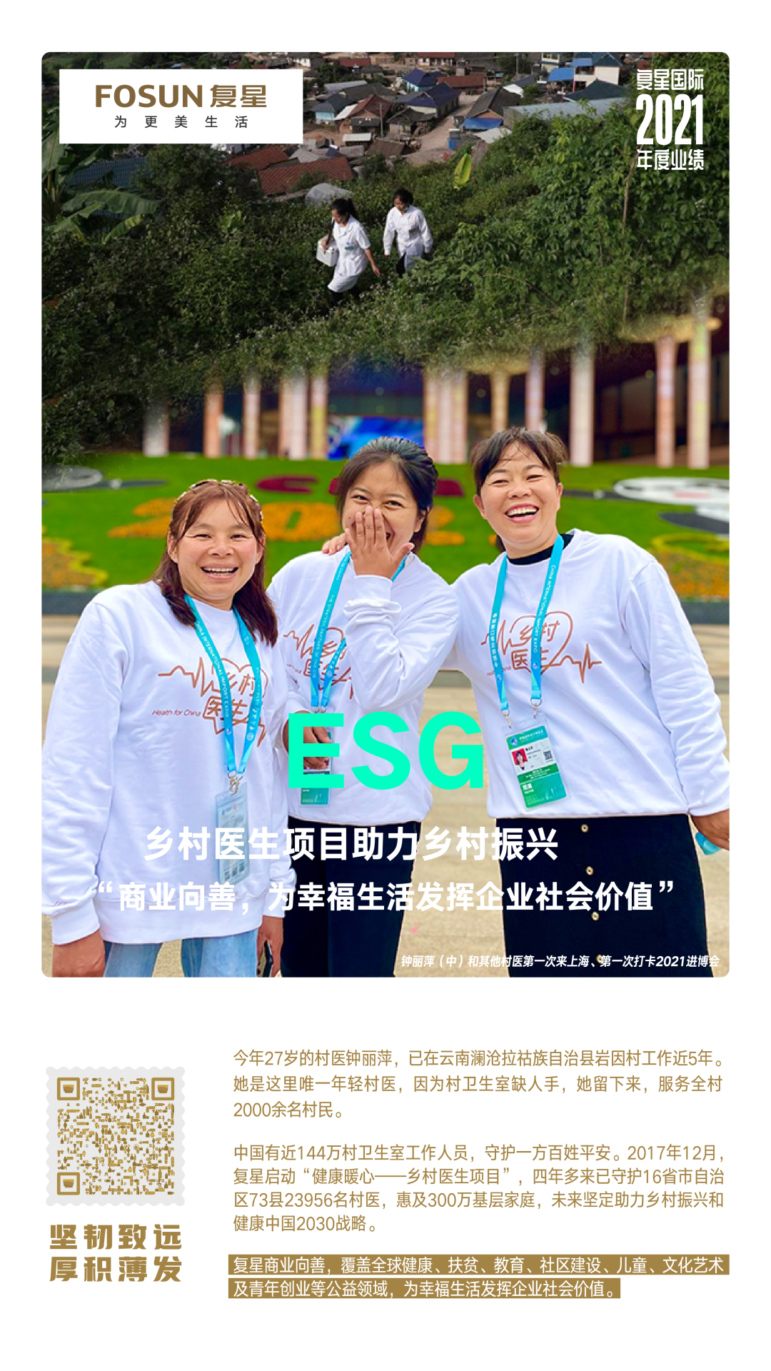 今年,复星迈入创业的第三十年。经过三十年发展,复星已发展成为国内少数既具备全球化运营与投资能力,又积累了深厚科技与创新能力的企业。回首过往,复星经历了不同的发展阶段,但我们始终坚持“修身、齐家、立业、助天下”的价值观,通过不断的战略升级,明确并坚定了服务全球十亿家庭客户、让全球家庭更幸福的使命。商业向善,客户为本,是复星的初心。我们一直坚信,无论外界形势如何变化,人们对幸福生活的渴望和追求不会改变。企业存在的意义,就是为这个社会带来更多的温暖与爱。市场越波动,挑战越复杂,复星对战略的坚持将愈加重要,正是这些坚持造就了今天独一无二的复星。
