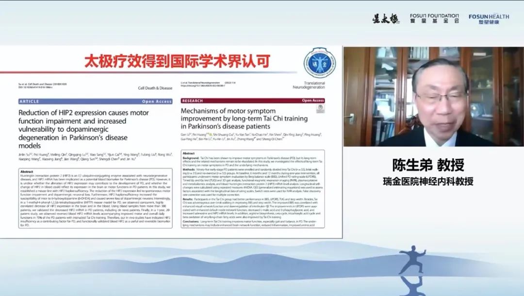 陈生弟团队的科研成果得到了国际学术界的认可。2月7日,论文《长期太极训练改善帕金森病运动症状的机制研究》在国际神经科学研究领域杂志《转化神经变性病》上刊出。3月15日,论文《太极增强认知训练延缓轻度认知障碍患者的认知减退的作用》,在国际痴呆研究领域最具影响力的权威医学杂志《阿尔茨海默症和痴呆》上发表。这也是复星基金会、星太极、瑞金医院神经内科联合发起的“太极拳辅助治疗帕金森病”(简称“太极抗帕”)、“太极拳训练延缓阿尔茨海默病”(简称“太极预防痴呆”)两个公益项目的阶段性科研成果。