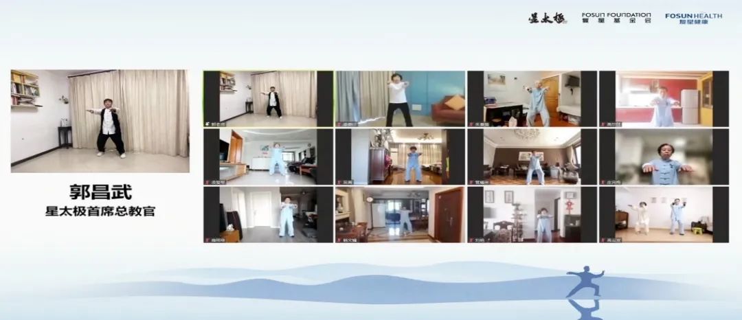 9日的直播中,十余位来自复星基金会“太极抗帕”公益班的学员和总教官郭昌武,一起在云端习练起星太极的三势太极拳。这不是“帕友”们的第一次云上练太极,自2020年新冠肺炎疫情发生以来,星太极持续开办线上太极直播公益课,公益班的学员保持着每天有规律的跟练打卡。