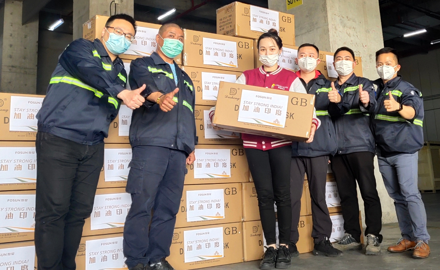 复星捐赠印度的10万只口罩,已抵达!