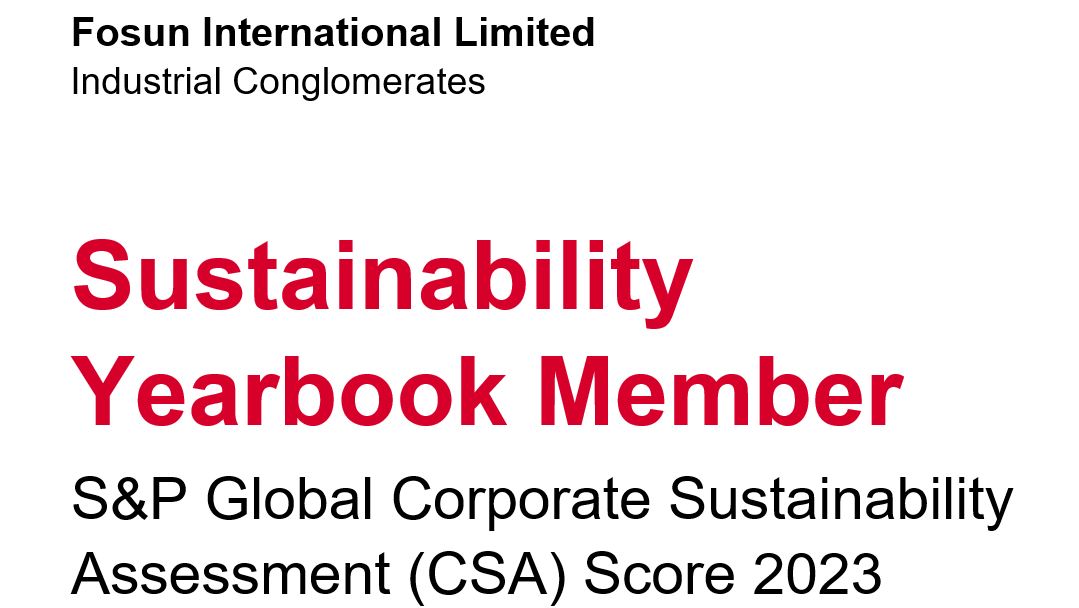 复星国际首次入选标普全球《可持续发展年鉴2024》,获“行业最佳进步企业”标徽