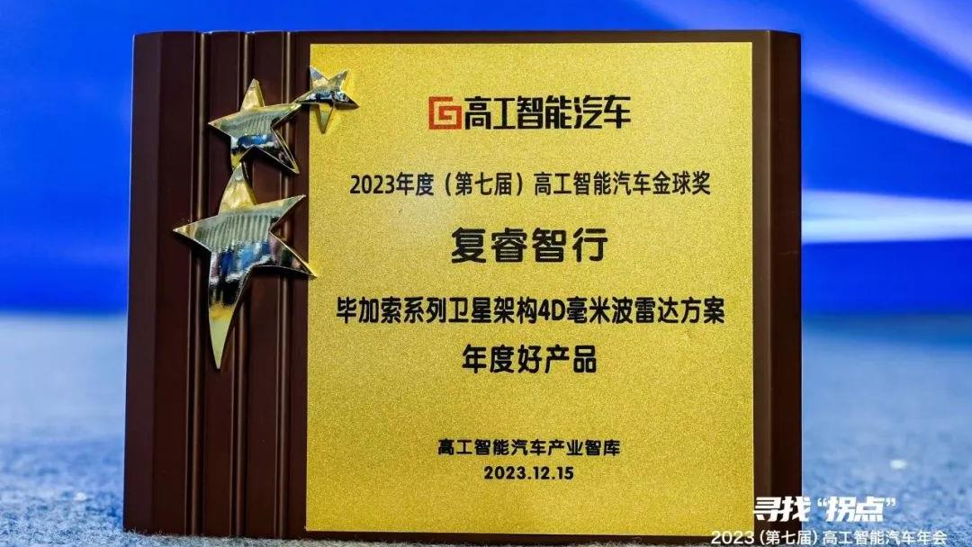 内容来源:复睿智行12月15日,复睿智行在第七届高工金球奖颁奖典礼上再度斩获荣誉,凭借领先的自动驾驶感知方案和独创的4D毫米波雷达技术,成功摘得两项重要奖项:“年度最具投资价值公司”以及“年度好产品-毕加索系列卫星架构4D毫米波雷达方案”。高工智能汽车研究院作为业内权威,每年评选出行业领军产品和企业品牌,以鼓励技术创新并激励企业争创卓越品牌。最具投资价值公司年度好产品作为复星旗下智能出行产业的核心企业,复