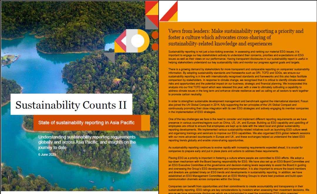 新加坡国立大学与普华永道发布《可持续发展的重要性研究报告》 肯定复星ESG披露水平