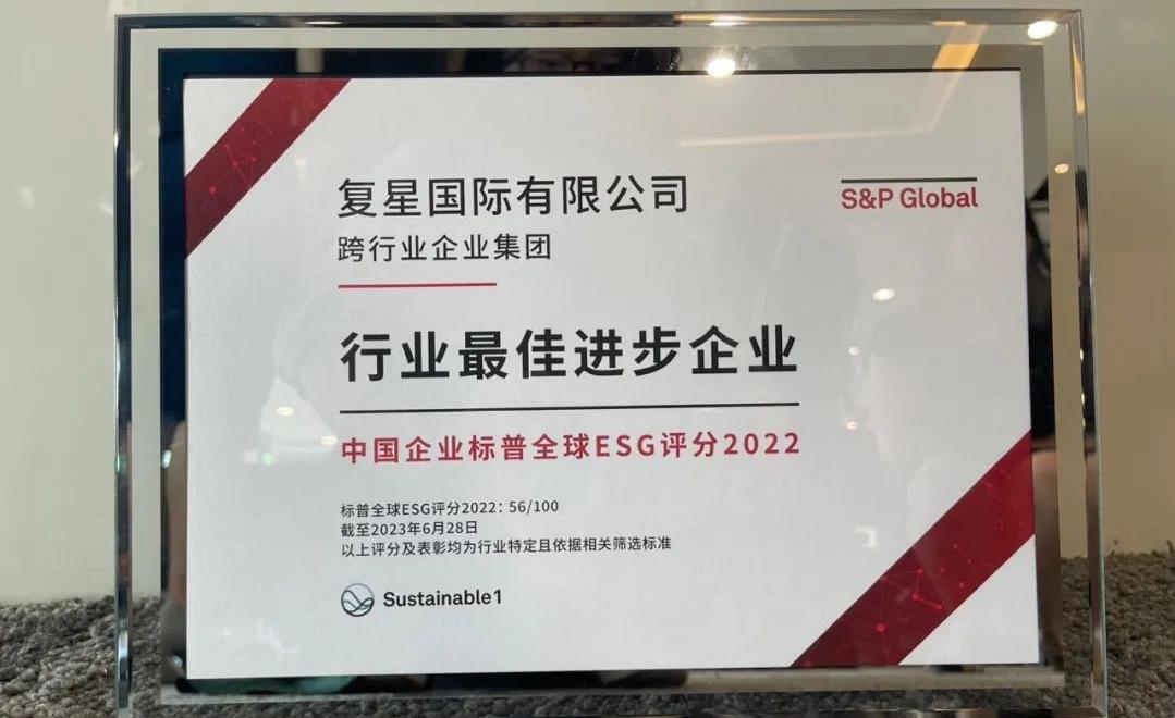 复星国际入选标普全球《可持续发展年鉴2023(中国版)》及获颁“行业最佳进步企业”标徽